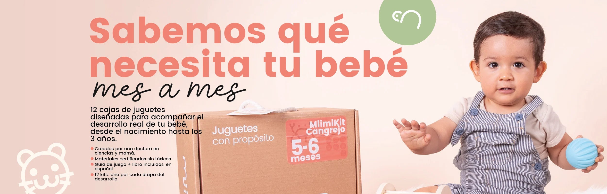 Miimi es un programa de acompañamiento al desarrollo infantil a través del juego. Hemos creado un sistema de 12 etapas (MiimiKits) que van desde el nacimiento hasta los 3 años. Tú eliges el kit que corresponde a la edad de tu bebé, y recibes una caja con los juguetes precisos para esa etapa, respaldados por especialistas en primera infancia, junto con una guía para saber cómo jugar con él.